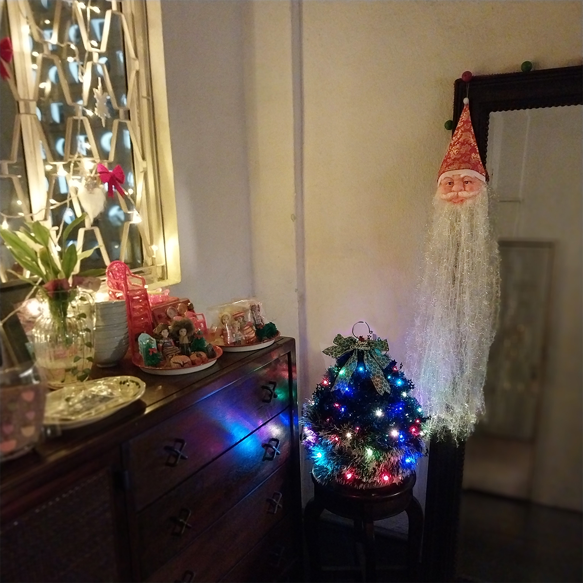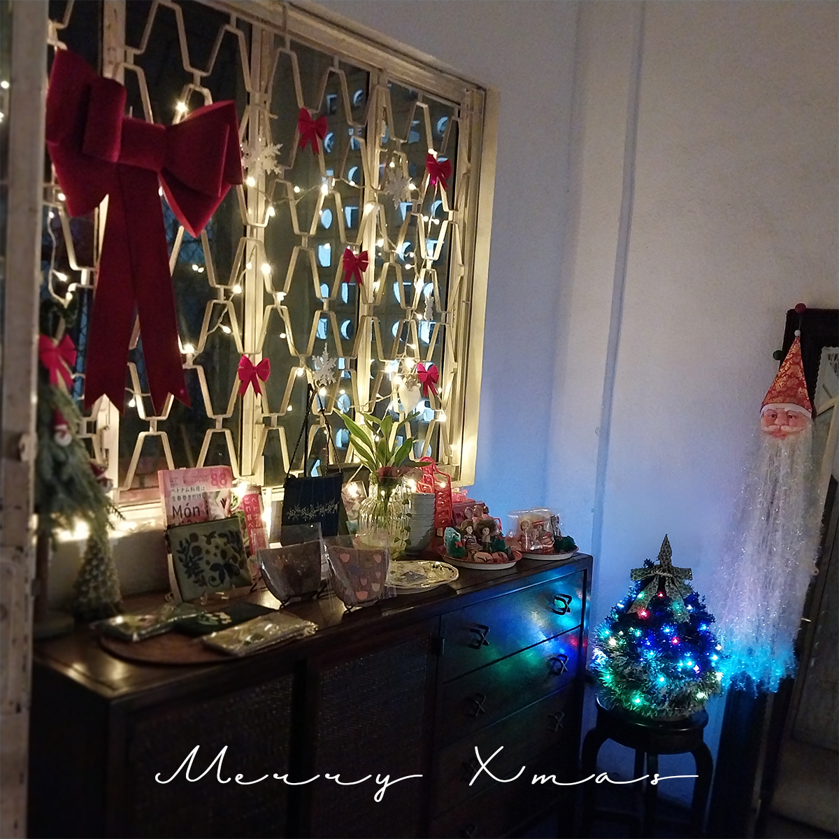 今年は窓の飾りを少し変えてリボンをメインにしてみました。